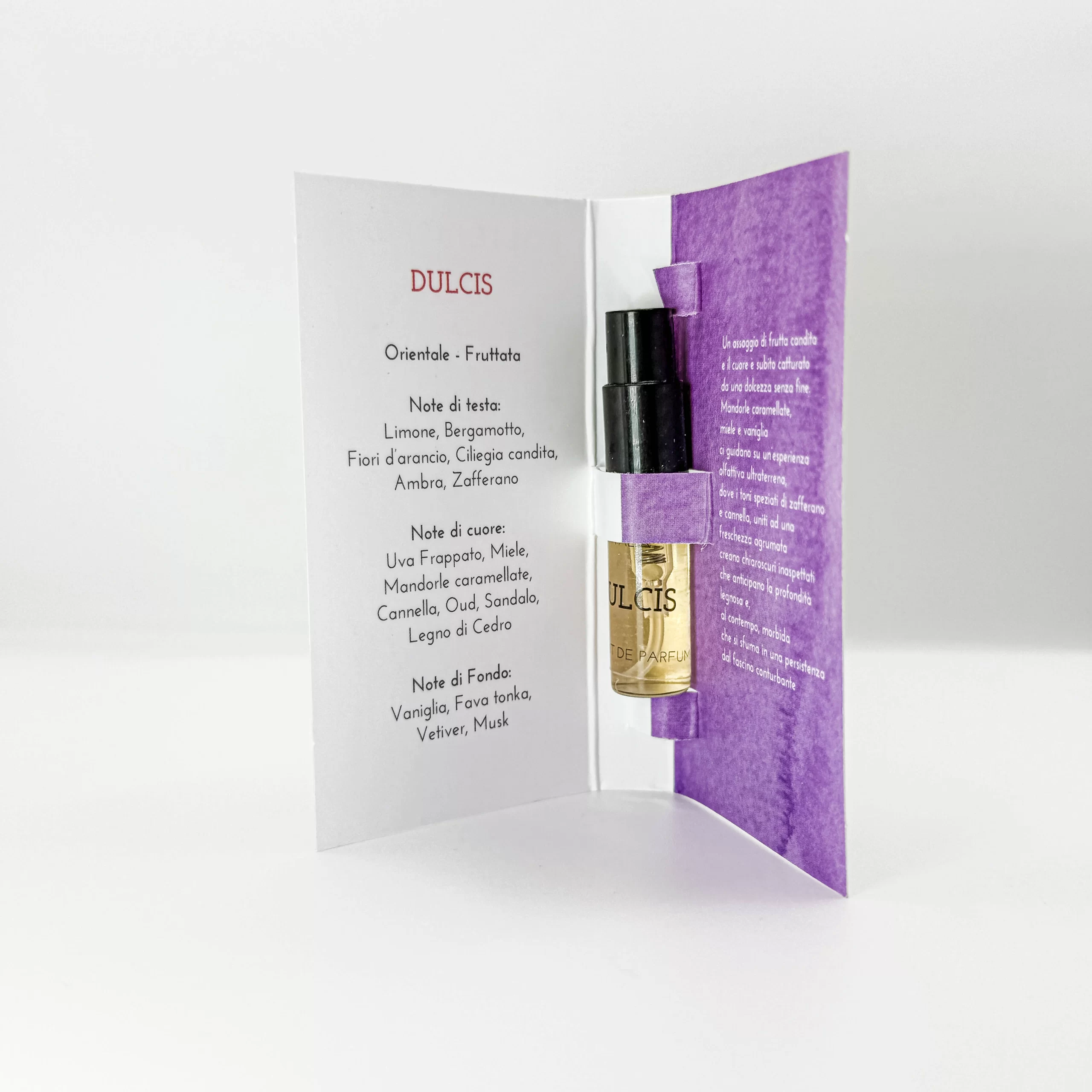 Dulcis: Features lemon, amber, and saffron top notes, a rich heart of candied almond, honey, cinnamon, oud, and sandalwood, and a lingering base of vanilla, musk, and vetiver