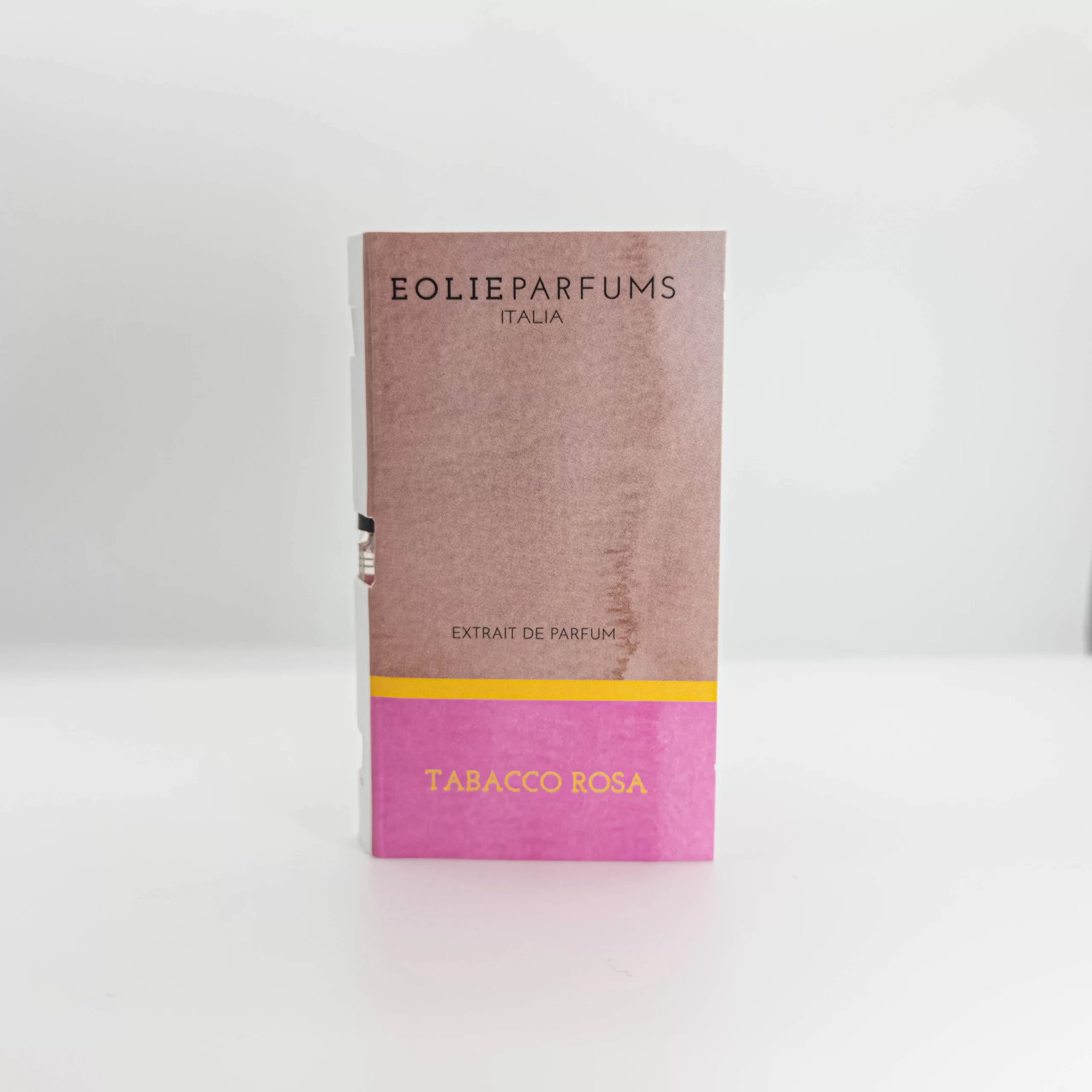 Tabacco Rosa: Opens with saffron and coconut cream, blends rose and smoky tobacco heart notes, and closes on warm vanilla, cedar, vetiver, and tonka