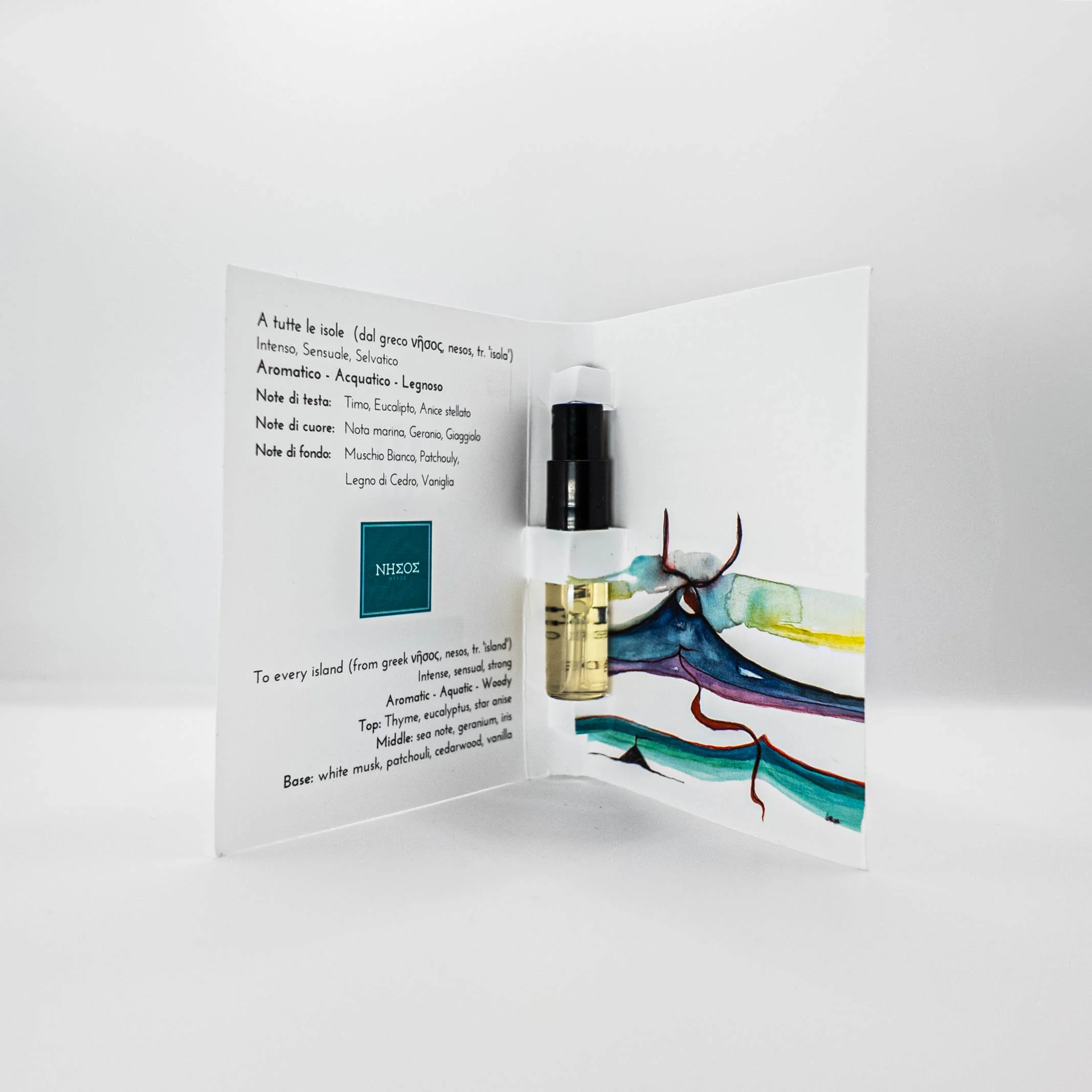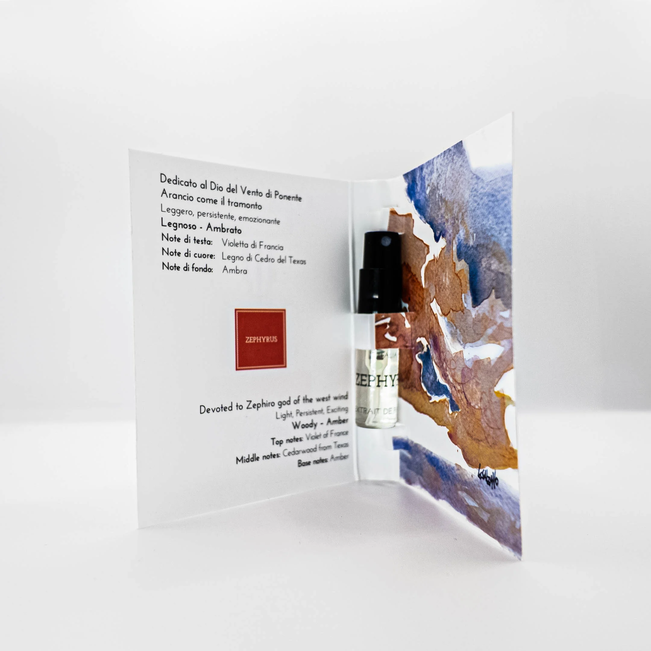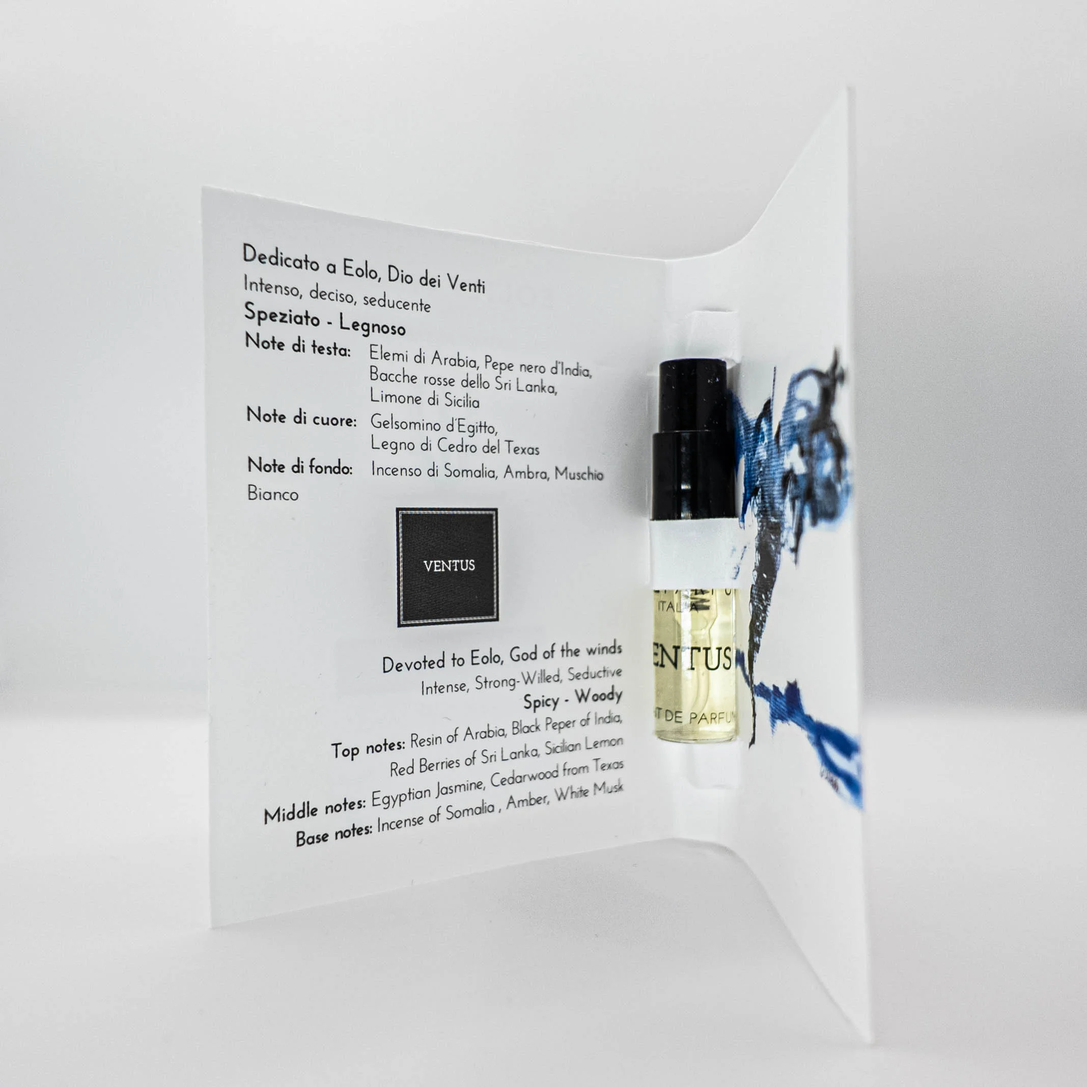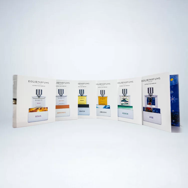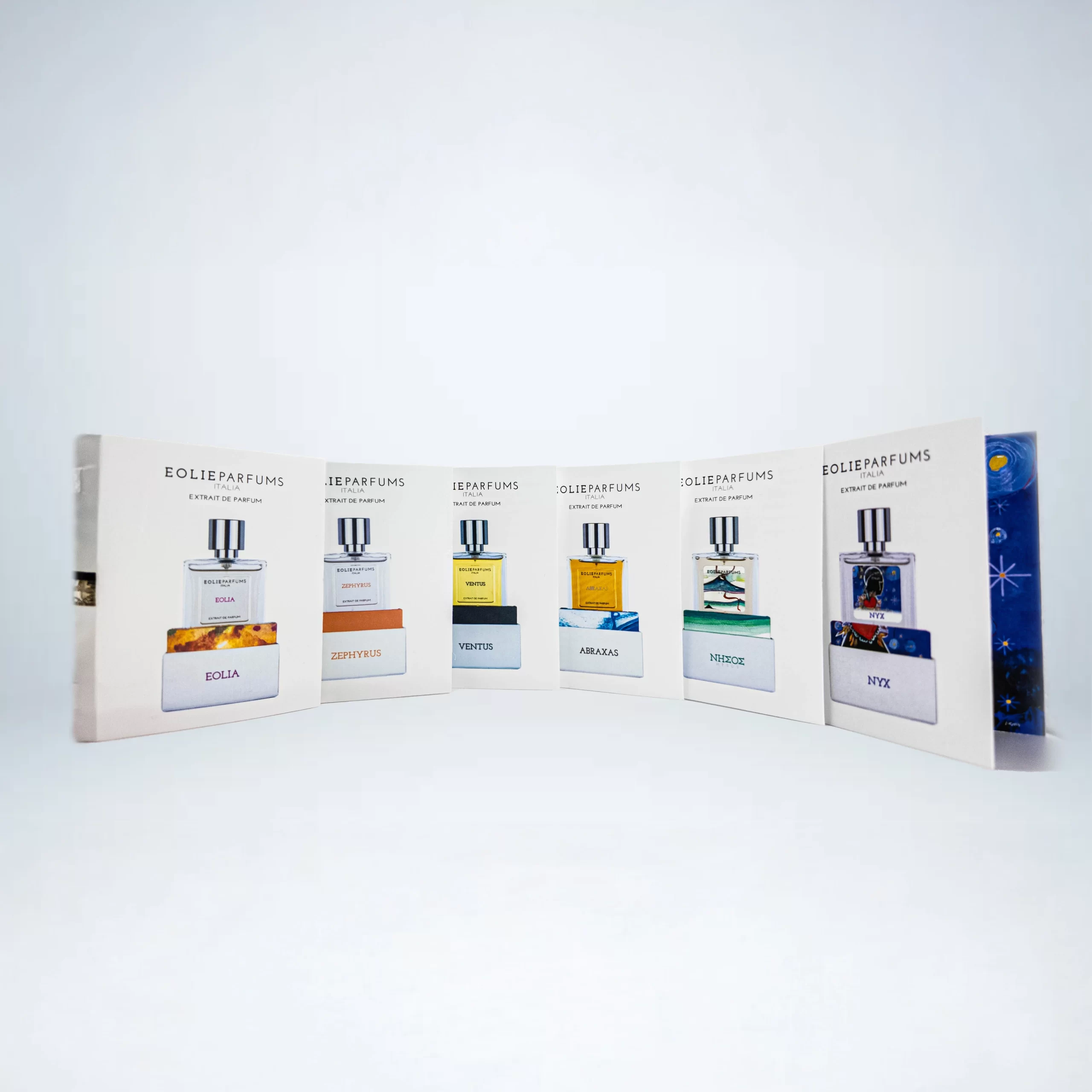 Il Fascino del Mito is a fragrance journey through myth and wind. Six extrait samples inspired by Aeolian legends, designed to express instinct, nature, and personal style.