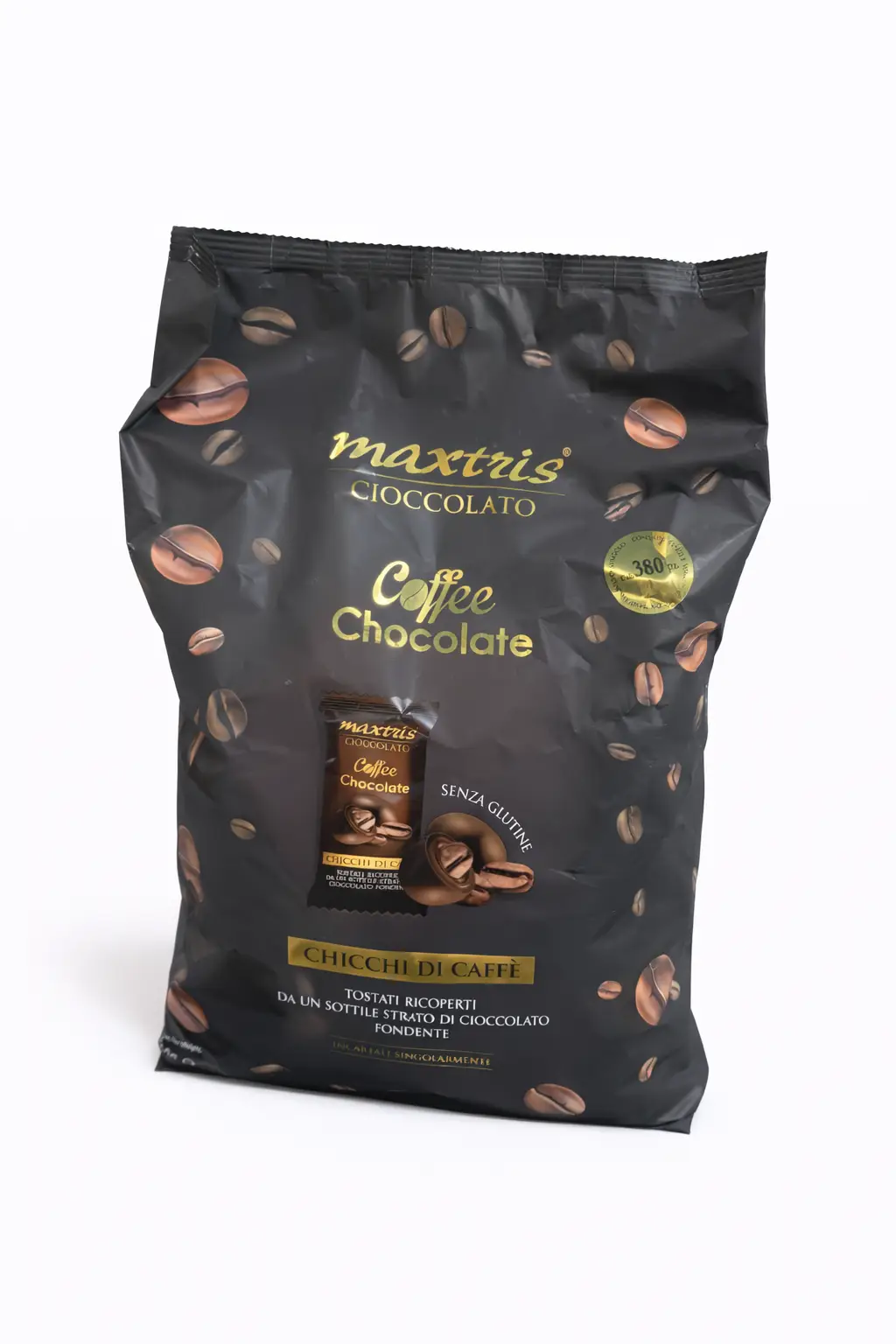 Maxtris Coffee Chocolate is a premium Italian treat: toasted coffee beans coated in rich dark chocolate, individually wrapped and packed in a resealable 1kg bag—perfect for gifting, entertaining, or an elegant pick-me-up