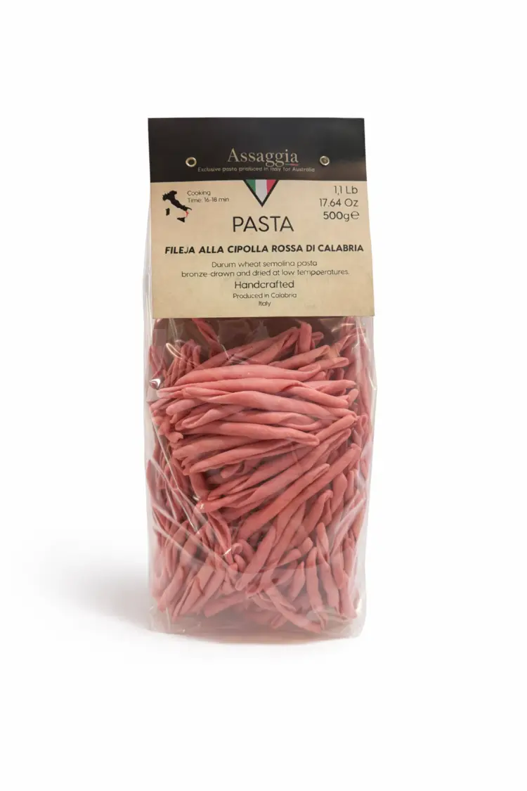 Twisted Calabrian fileja with savoury onion character—made in Italy for rustic texture and premium depth.